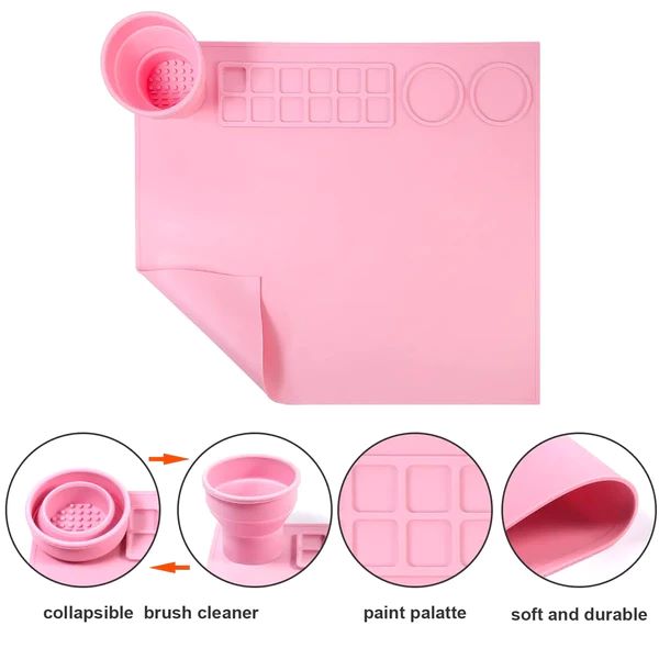 Naše vůbec první podložka se zabudovaným skládacím kelímkem na čištění štětcem. Kelímek na čištění štětců je navržen tak, aby se do něj vešla voda a vyčistily se štětce.