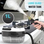 Jmenovitý výkon 2500W vytváří páru až 105℃ za méně než 10 sekund, což rychle odstraňuje mastnotu, špínu, prach a skvrny z různých povrchů.
