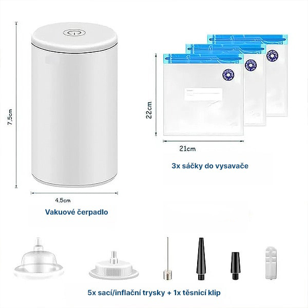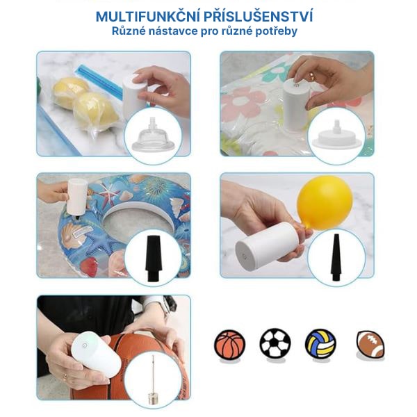 🎈 Slouží také jako vzduchová pumpa – Nafukuje úložné vaky, balónky a další.