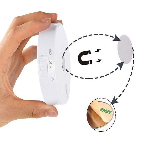 Nainstalujte ji kamkoli! Vestavěný magnet vám umožní umístit ji na jakýkoli železný povrch nebo ji pomocí oboustranné lepicí pásky přilepit na jakýkoli rovný povrch.